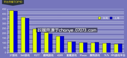 本周在平台开服量方面,各主流平台逐渐恢复到了平稳的态势,涨跌幅幅度都较小,所以在平台开服量榜单上的排名也几乎没有大的变化。观察37游戏和360游戏本周对平台游戏总数都有一定减少,但平台开服量没有大变化,这与平台主打游戏开服量的增加有一定关系。