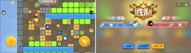 与当年经典一样,《欢乐坦克大战》同样以俯视角第三人称射击的方式呈现。虚拟摇杆加虚拟按键的操作形式很容易上手,玩家只要操控自己的坦克,在 120 秒内把敌方基地拆掉,或在时限内比敌方击杀更多,就能获胜。