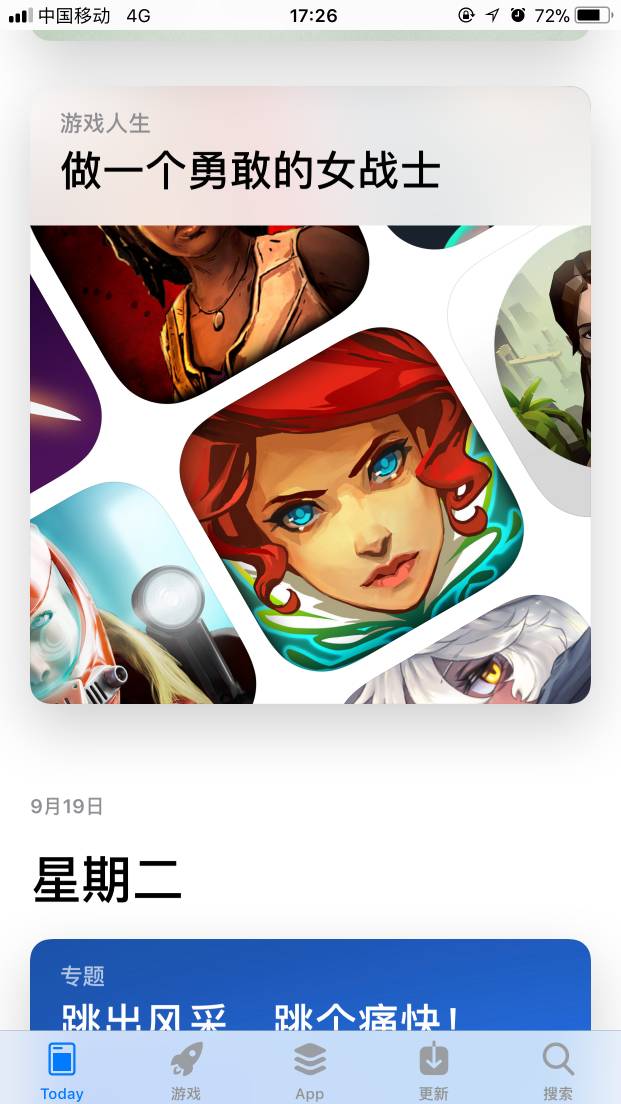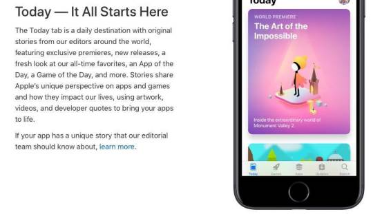 在“Today”里,除了每日推荐一款应用和一款游戏外,内容范围拓展到了攻略、使用方法、用户与App的故事、开发者故事等。而且头图比起以前来说增大了很多,整个“Today”板块里,给用户的感觉就像真的在刷朋友圈一样,玩家可以在里面看到每天不同的新鲜的推荐。而开发者可以联系编辑团队推荐自己的故事,对于开发团队来说,这是一个很好的向用户和玩家展示自己团队的机会和平台。