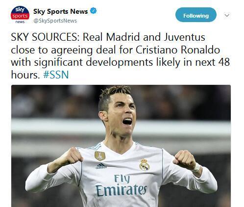 转会专家迪马济奥表示,C罗经纪人门德斯已向尤文承诺,弗洛伦蒂诺将会同意C罗离队加盟尤文。