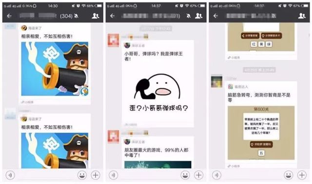 小游戏真正的威力是打破人际关系壁垒,上到亲戚八卦群,下到朋克养生群,精准全覆盖。就连表情包,在它面前都黯然失色。