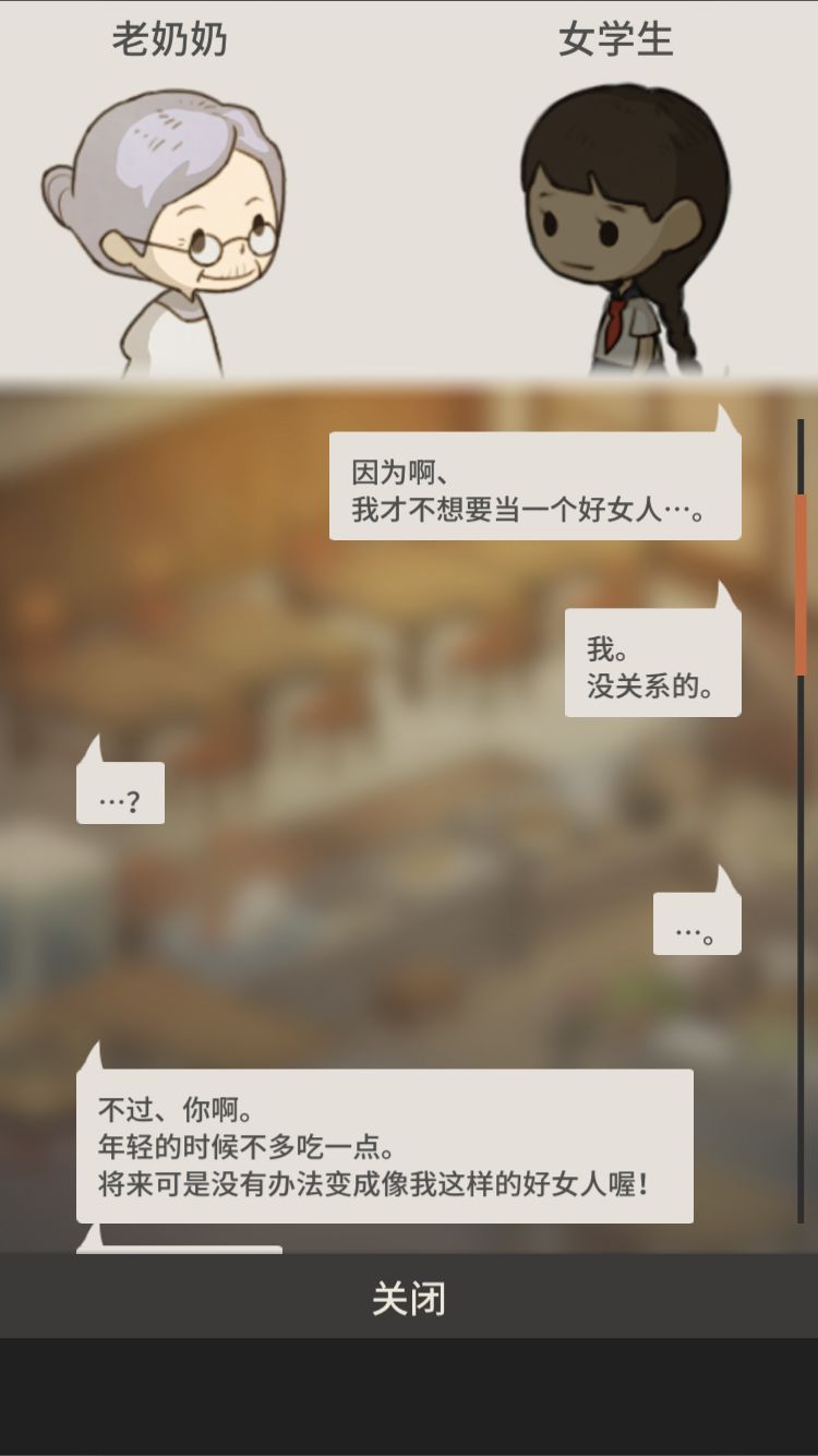 与客人交谈是整个游戏的核心,顾客用餐完毕后,老奶奶可与之对话,挖掘该顾客不为人知的故事,每一条故事线都充满意外,有温情也有感动,这就是生活,或者这就是我们自己。