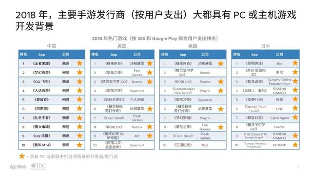 而主要手游发行商(按用户支出)大都具有 PC 或主机游戏开发背景: