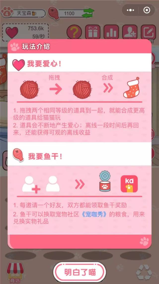 他给我们举了个例子,「Q猫物语」这款小游戏是为小程序「宠咖秀」量身定制的,「宠咖秀」是一款宠物社区类小程序。