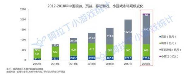 另外,据阿拉丁数据显示,小游戏行业总体市场规模达到60亿元,对比783.6亿元市场规模的端游、页游,以及1450.2亿元市场规模的移动游戏,小游戏才刚起步。这也意味着谁先抢占先机,谁就能分到更大块的蛋糕。