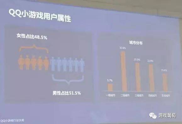 目前在QQ小游戏用户大盘中,女性用户占比48.5%,男性用户占比51.5%,性别比例大体持平。而在地理分布上,来自二线、三线城市的用户占比达到56.1%。