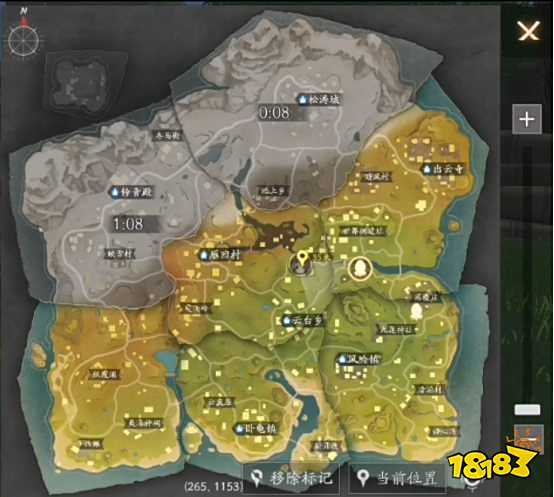 如果看不懂什么北部区域,西北部区域,不清楚自己有没有在区域内,就可以点击右上角的地图,直接打开大地图查看。