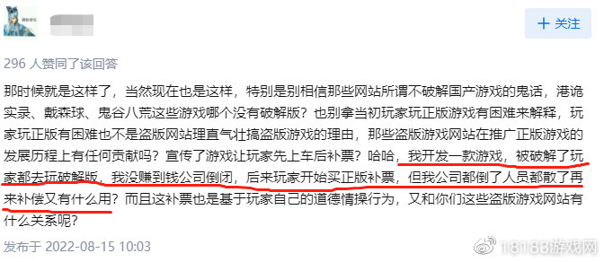 何况还有人大肆宣称“破解是帮宣传”、“盗版也对国单好”“盗版危害不如手游氪金,盗版拓宽了受众”,称购买正版游戏的玩家为“冤大头”“有免费的竟然不白嫖”,说实在的这有些可笑,在版权意识和付费意愿已经大幅提高的今天,换个角度来看,也是可悲的——对部分群体而言,他们已经习惯了白嫖。