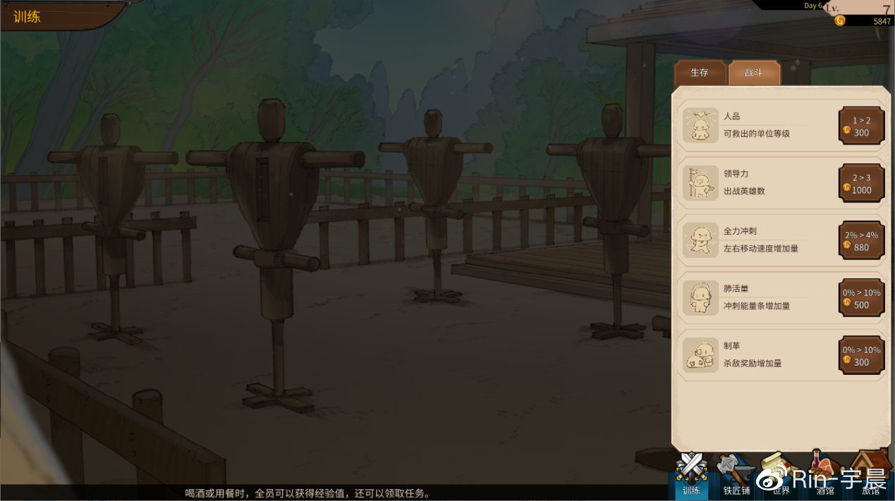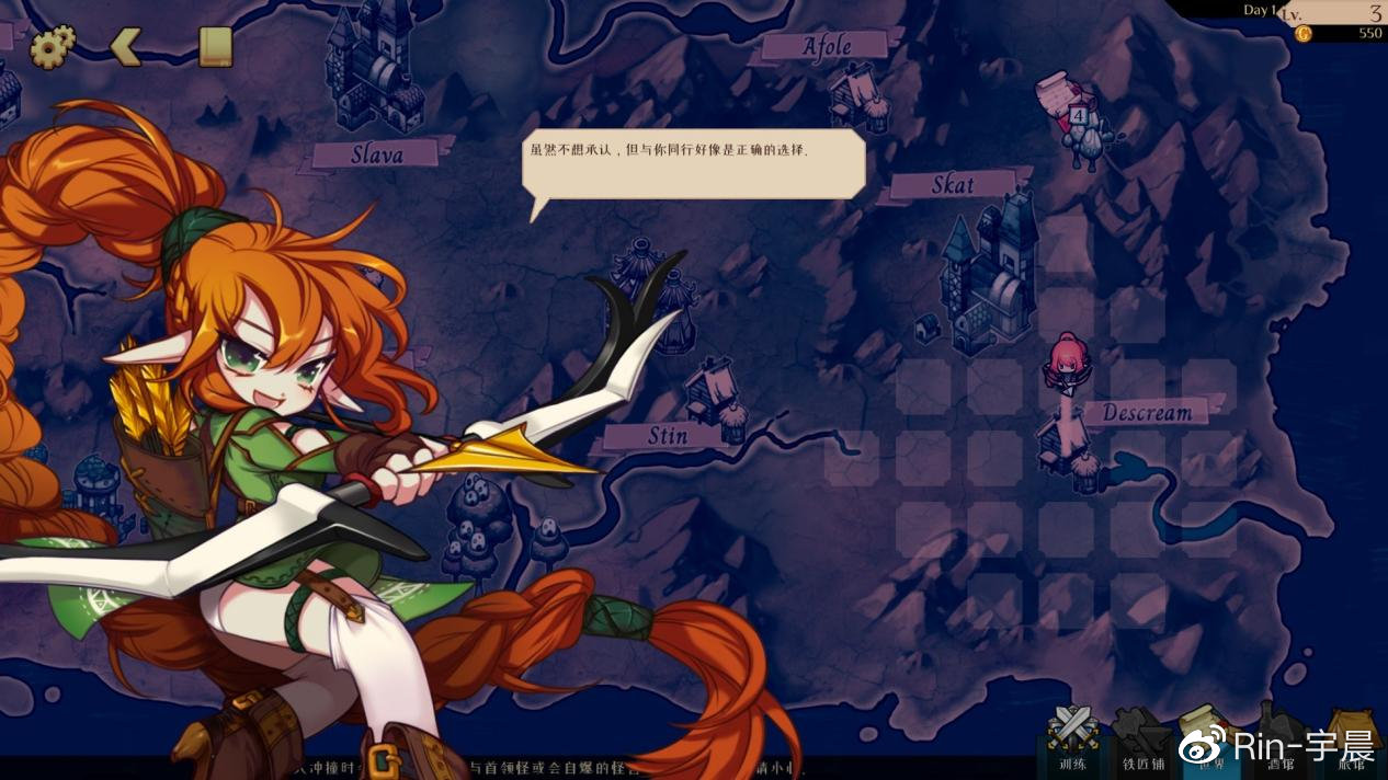 不过与其说是弹幕射击游戏,在体验上更像是一个躲避类的游戏,战斗中玩家不仅不需要手动攻击,并且走位也只能控制左右,唯一的特殊动作就是一个类似于闪避的加速移动。本作的设施功能也比较基础,训练可以学习被动技能,铁匠铺可以锻造装备,旅馆可以在回复体力的同时更换装备,露宿则不具备这个功能,在酒馆中还有概率遇到一些特别的委托任务。随着的剧情的推进,也会有越来越多的人物加入主角的队伍。