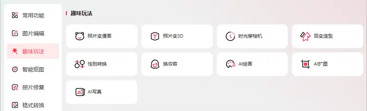 #2 一键改图这款软件有很多好玩有趣的AI图片编辑功能,不仅在日常修图时能派上用场,也可以用它来给我们闲暇无聊的时间增添乐趣oppo手机游戏修改器免root版本在“趣味玩法”一栏中就能找到各种神器的图片玩法,比如照片变漫画、时光穿梭机、性别转换等,还有AI绘画、AI扩图、AI写真这些兼具好玩和实用的AI图片功能。