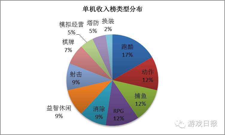 单机收入榜上,《开心消消乐》成为唯一一款出现6次的产品,但却缺席以重度化著称的当乐平台。《火柴人联盟》和《地铁跑酷》都出现5次,出现2次及以上的产品共计12款,而仅出现1次的产品数量高达30款,单机收入榜的分散程度可见一斑。