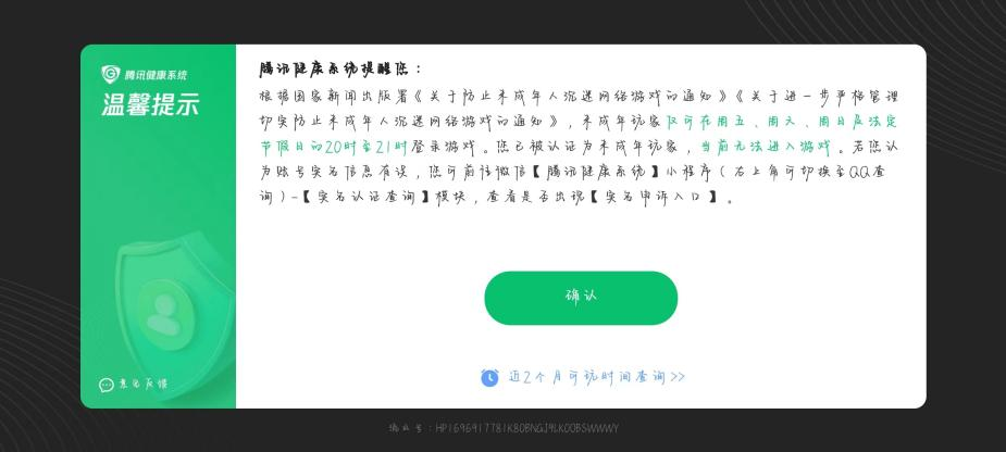 (图示:在规定游戏时间外,用新创建的账号登录《王者荣耀》会弹出健康系统,无法登陆)