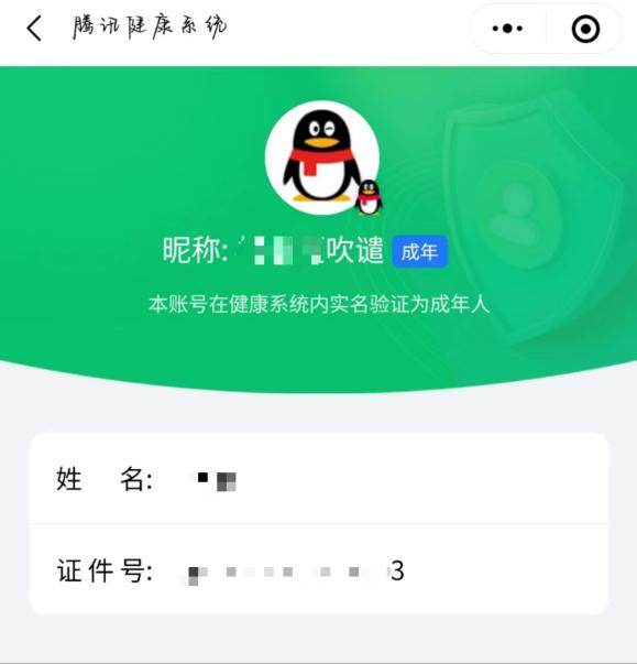 (图示:购买的账号在QQ钱游戏机手机壳包的未成年人实名认证后,通过腾讯成长守护公众号调出了一个成年人(原号主)的实名认证信息,形成“一号两身份”的局面)另外,测评小组发现,QQ账号可以做到“一号通用”例如,用上述“过审”账号可以无阻碍的登游戏机手机壳录《和平精英》等设有QQ专属渠道的游戏。