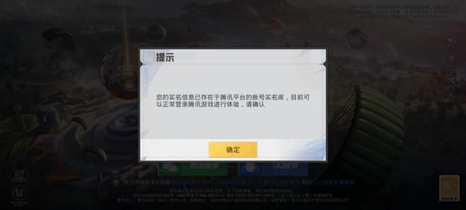 (图示:用购买的账号在《和平精英》创建初始号时弹出的窗口,身份信息显示早已录入系统,确认后可以直接登录无需实名认证)